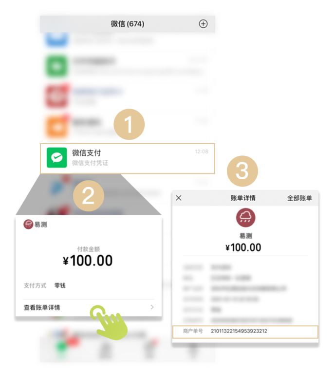 从微信列表的微信支付找到交易记录, 输入订单号进行查询